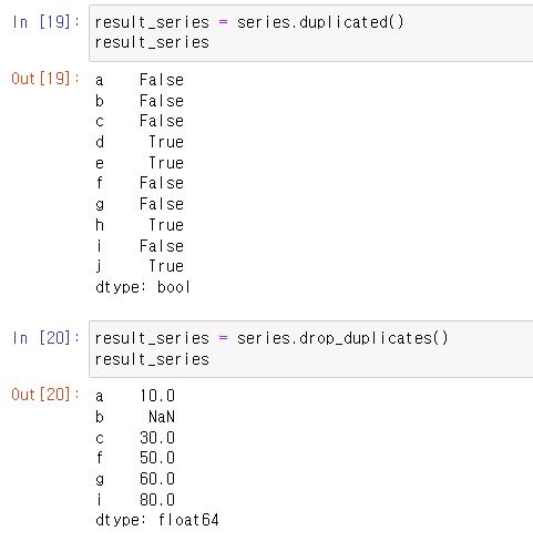 결측치와 중복값 처리는 시리즈,데이터프레임,