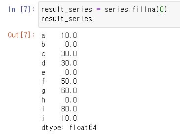 결측치행을 없애는 것이 아닌, 다른 값으로 대치하고 싶다면 fillna() 함수를 사용합니다.