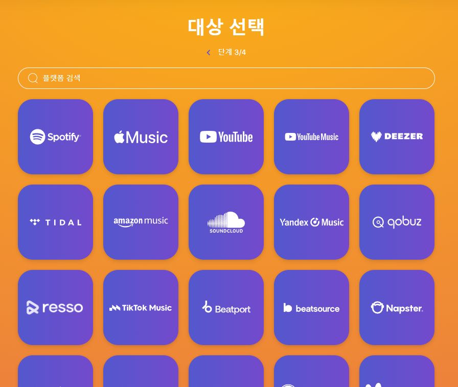 모든 음악 플랫폼 간에 재생 목록을 전송하세요! Spotify와 Apple Music, Deezer, YouTube, Google Play Music, TIDAL 등에서 사용할 수 있습니다!