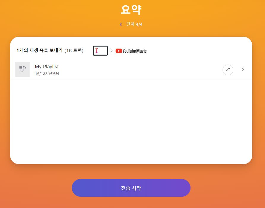전송시작을 누르면 끝! 새로운 플레이리스트가 자동으로 해당유튜브뮤직 계정에 만들어지게 됩니다.