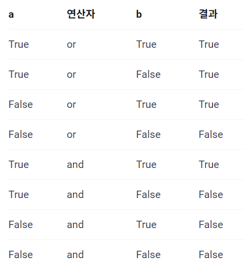 a와 b가 모두 참일때만 참을 반환하도록하거나, a와 b중 하나만 참일때도 참을 반환하도록 할때 사용합니다.