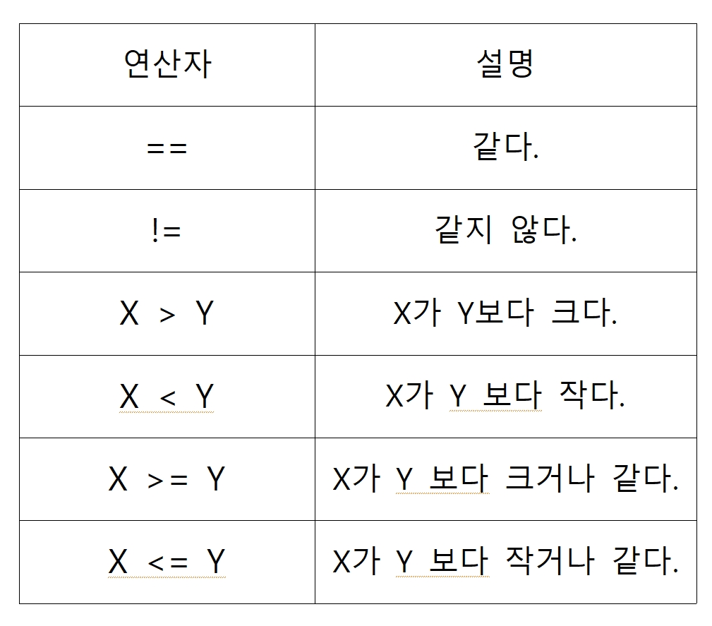 '같다'의 연산자가 등호를 두개사용(==)하는 것은 변수선언(=)과 구분하기 위함입니다.